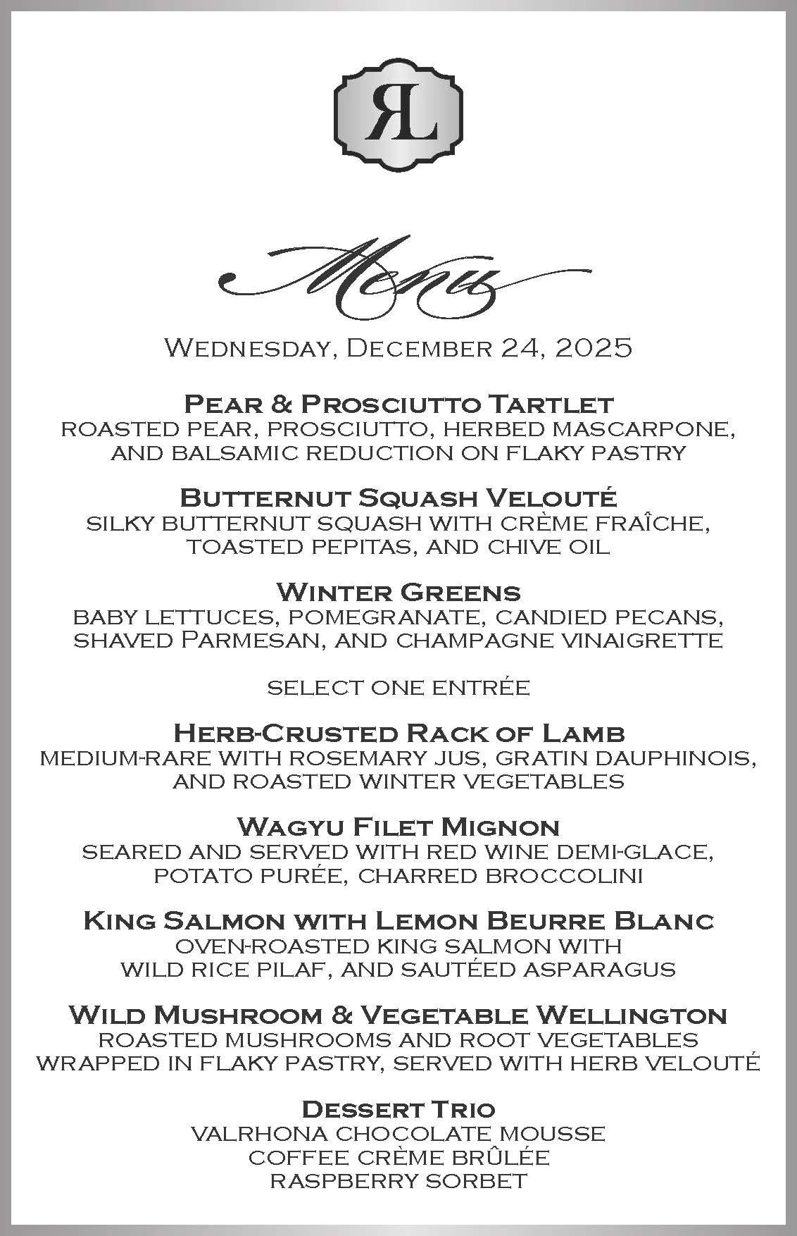 Experience Christmas Eve at the historic 1929 Roosevelt Library, where candlelight flickers across the room, a roaring fire warms the evening, and our white-glove service ensures every detail is perfect.