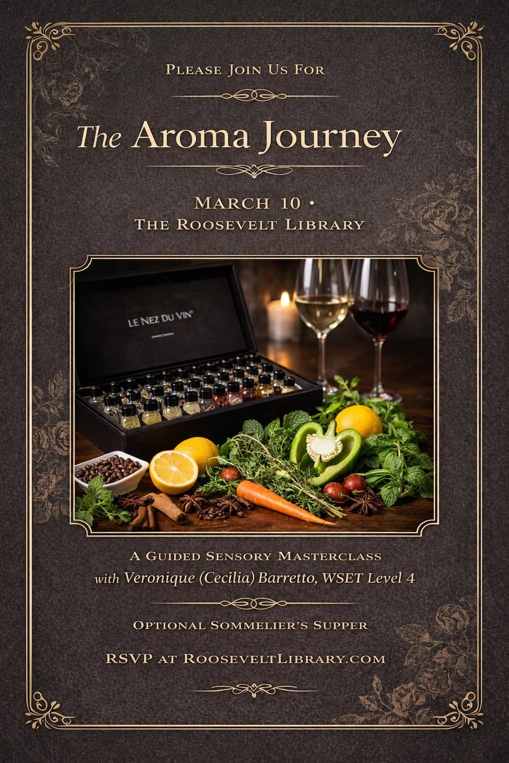 In addition to the professionally calibrated aroma vials, guests will evaluate fresh reference ingredients—such as bell pepper, citrus, herbs, spices, and seasonal fruits—to reinforce sensory memory through comparative analysis. Guided blind exercises, structured tasting discussion, and fault recognition drills will sharpen analytical skills while expanding technical vocabulary. By the end of the evening, participants will have strengthened their ability to assess wine with greater clarity, confidence, and precision in accordance with WSET-level standards.